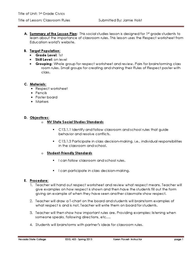 Classroom Rules Worksheet Teachers Pay Teachers