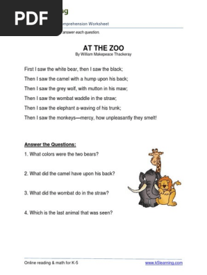 Reading Comprehension Worksheet Grade 1 At The Zoo Pdf
