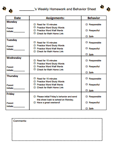 Miss Crouch S Class First Grade Homework Behavior Sheet
