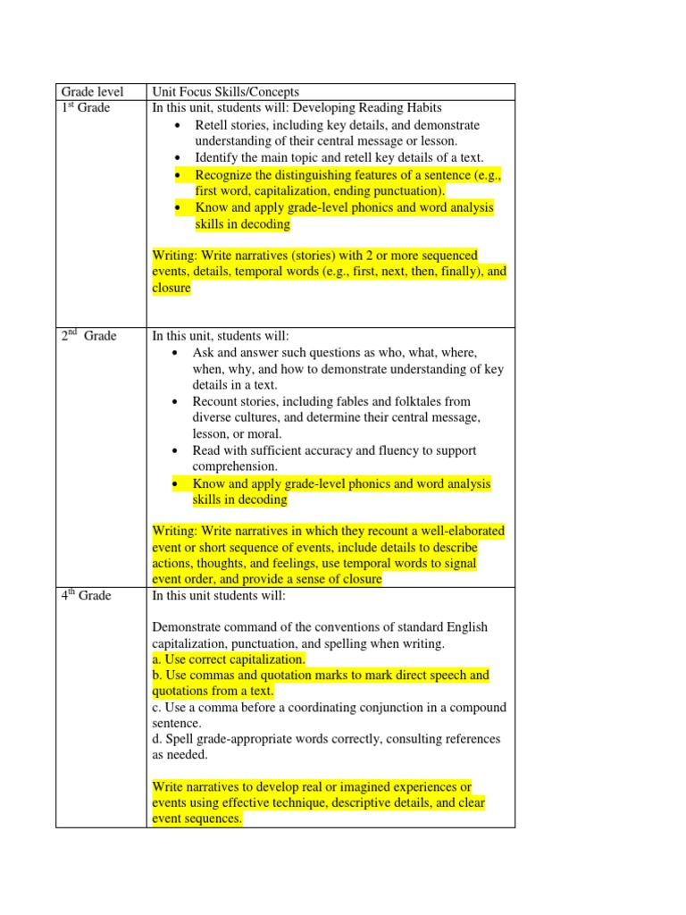 Read Ela Unit 1 Grade Level Standards Narrative Phonics