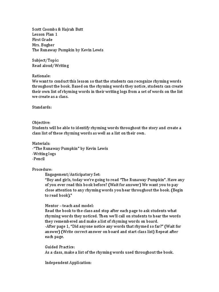 Rhyme And Writing Lesson Plan Education Com