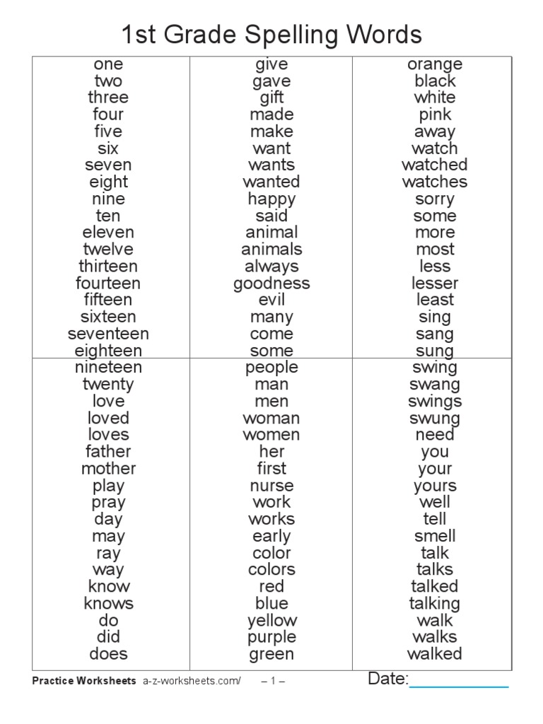 A Grade 1 Spelling Words Pdf This First Grade Spelling List