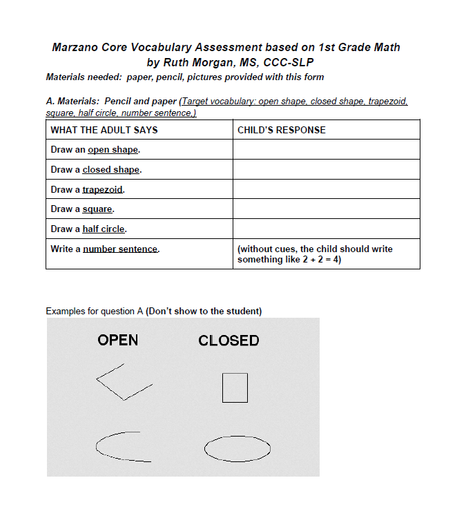 Marzano Kindergarten And 1st Grade Common Core Math Vocabulary