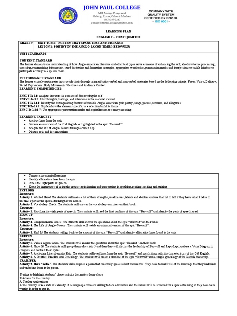 G7 English Lesson Exemplar 1st Quarter Pdf City Schools Division