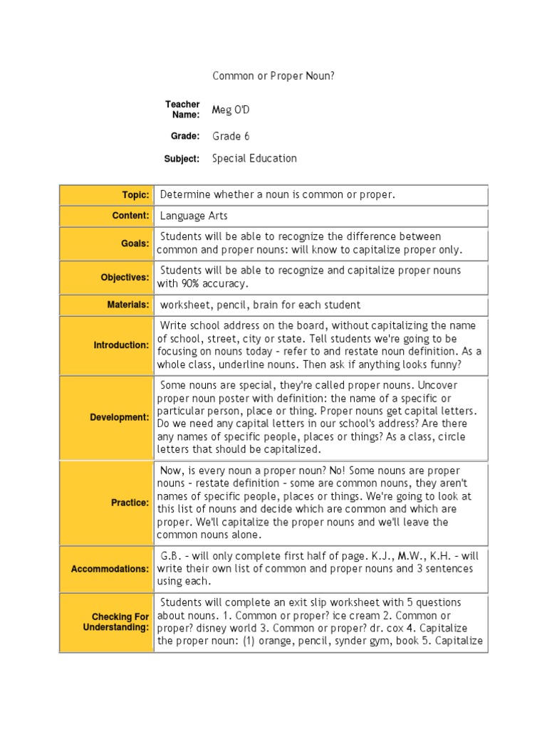 Identifying Common Or Proper Nouns Lesson Plan Education Com