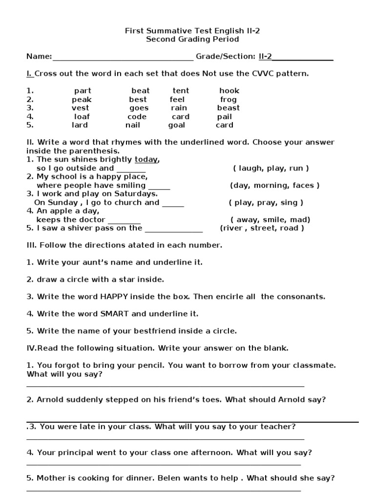 Grade 1 Summative Test Third Quarter Powerpoint Vid Youtube