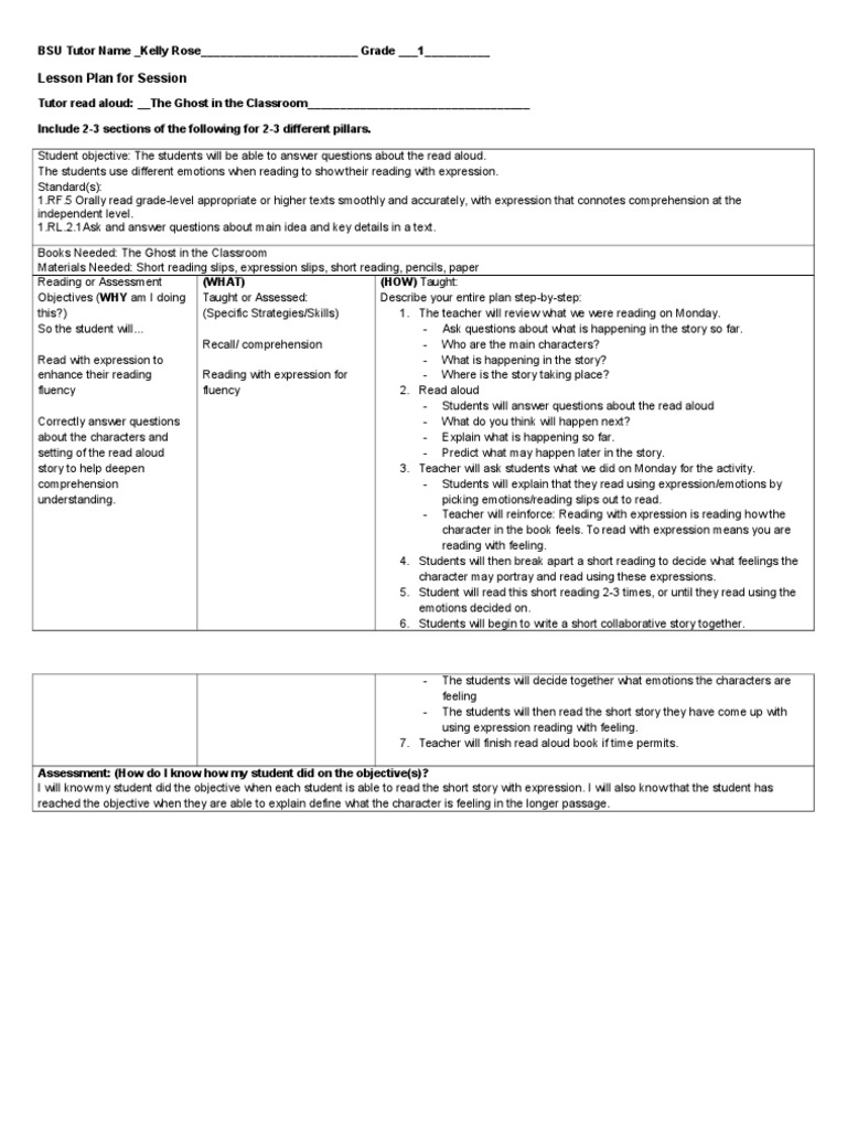 1st Grade Tutor Lesson Reading Comprehension Reading Process